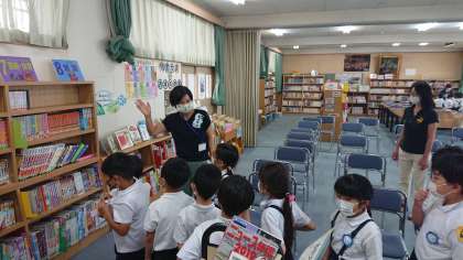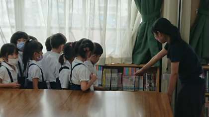 今日は、図書館指導員の方に、図書室の使い方や本の紹介をしてもらいました。