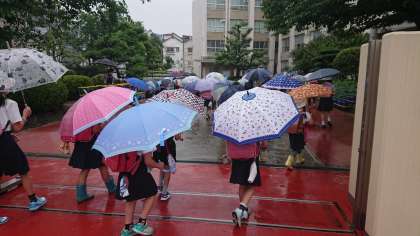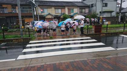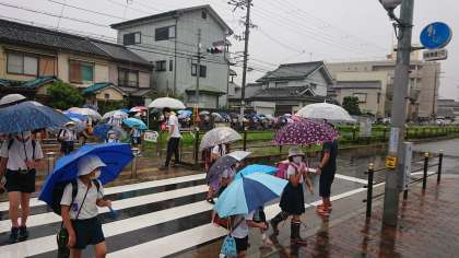 子どもたちの安全確保のため、毎日、教職員が信号の前に立っています。