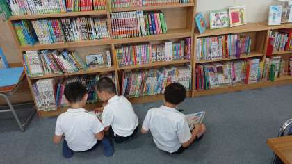 子どもたちは、いっしょうけんめいに本を読んでいます。