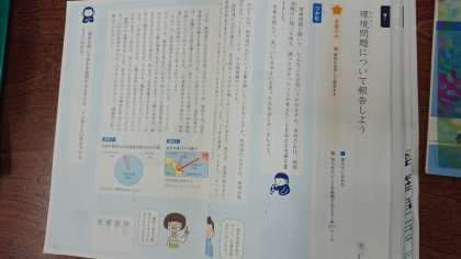 5年生の国語では、「環境問題について報告しよう」を読みました。