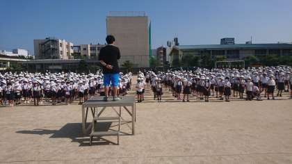 全校朝会のようすです。