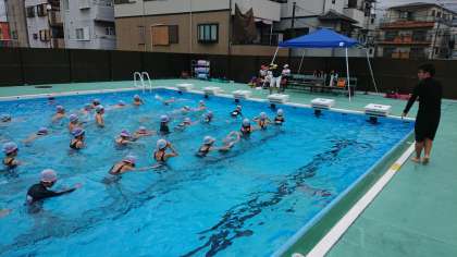 子どもたちは、久しぶりの水の感触を楽しんでいました。