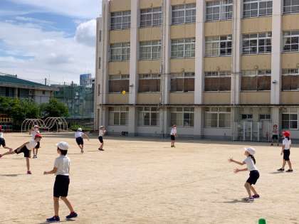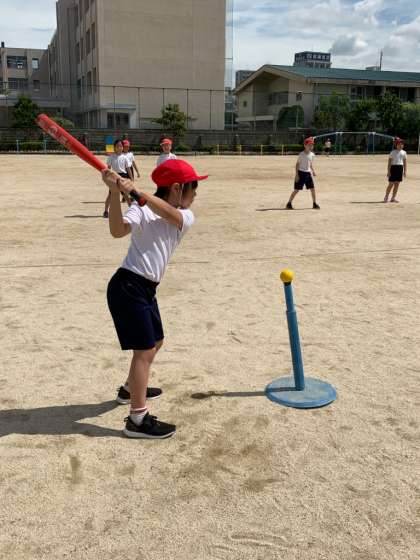 ティーボールのゲームの前に、ボールキャッチとバッティングの練習をしました。