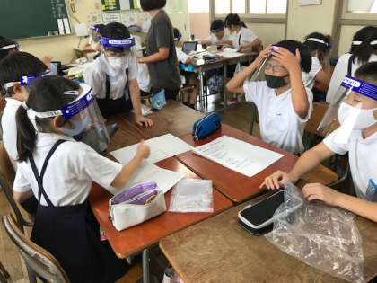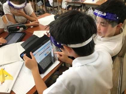 環境問題についてのことをタブレットを使い調べ、新聞にまとめました。
