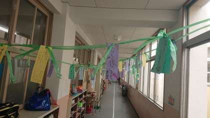 子どもたちは、短冊に願い事を書きました。