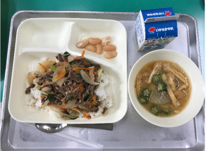 今日の給食は、牛丼、