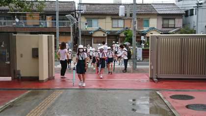 途中から雨が落ちてきましたが、子どもたちは安全に登校できました!!