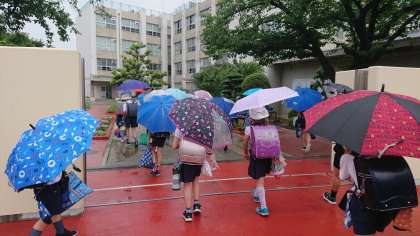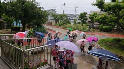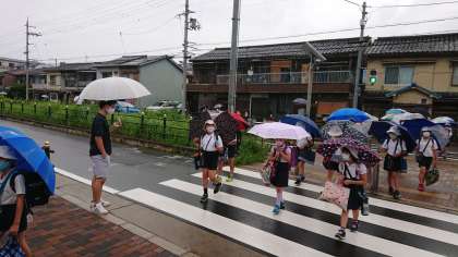 今日も雨の中の登校でしたが、子どもたちは、安全に登校できました。