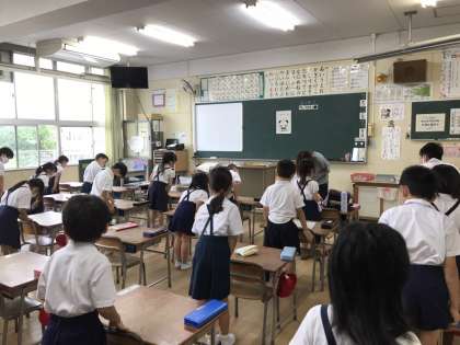 校長先生のお話のあと、集会担当の先生から今月の生活目標についてのお話がありました。