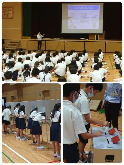 6年生の社会では、鶴見区役所から選挙管理委員の方にお越しいただき、選挙に関する出前授業を行いました。