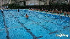 先生のお手本を参考に、バタ足の練習をしました。