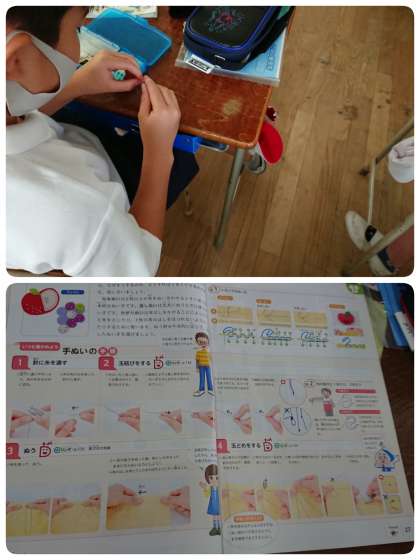 今日は、針に糸を通したあと、玉結びの練習をしました。