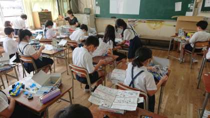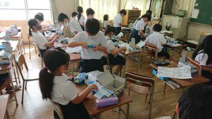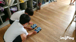 電気の実験で使用した装置を、モーターカーに改造しました。
