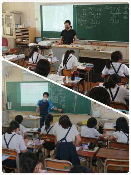 5年生は、小数のかけ算をひっ算を使って、計算しています。