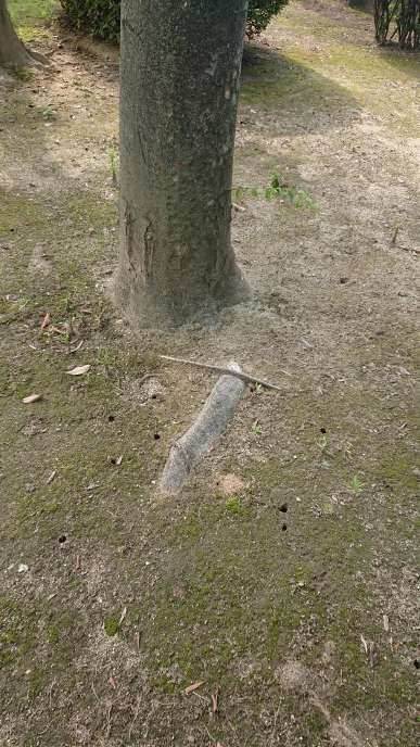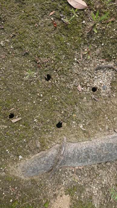 答えは、セミが羽化のため、地中から出てきた時にできた穴です。