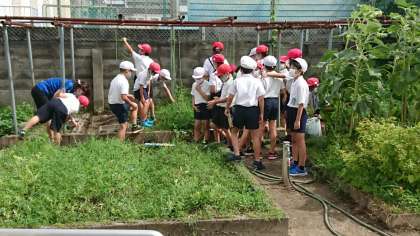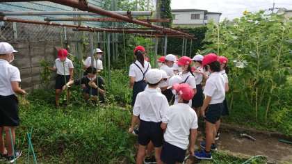 今日は、学習園で育てているヒョウタンの観察と雑草抜きを行いました。
