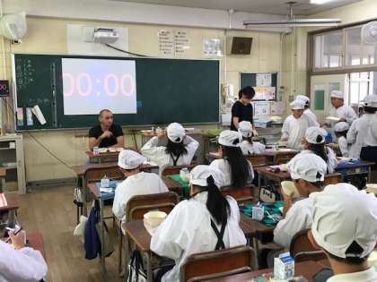 いまは、コロナの関係で班の形にして食べることはできませんが、ジョン先生からいろいろな話を聞くことができ、楽しく給食を食べることができました。