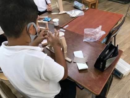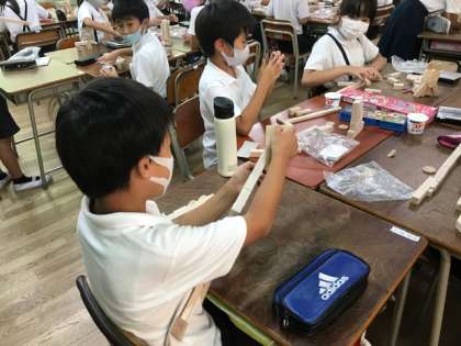のこぎりを使い、木を切ったものを組み合わせて、それぞれ思い思いのものを作りました。みんな楽しそうに、活動することができました。