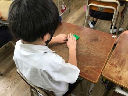 最後に平和の祈りを込め、みんなで鶴を折りました。