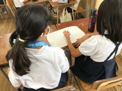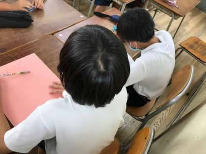 2学期の係を決め、そのあとグループで協力して、係カードを作成しました。