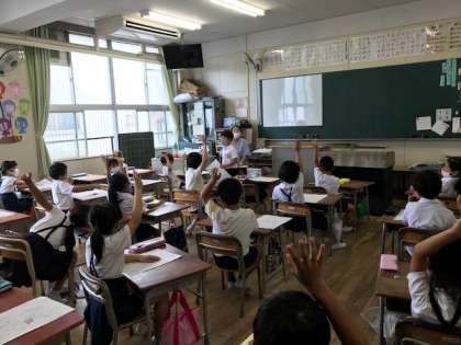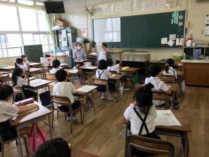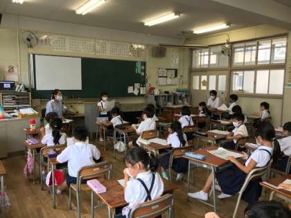みんなの前で夏休みの出来事を発表しました。