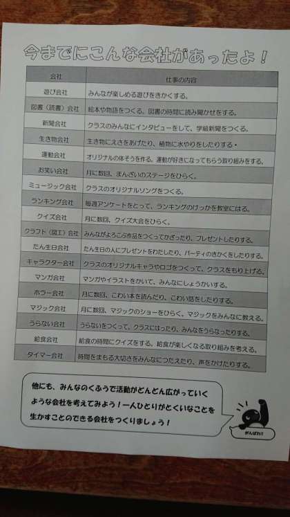 係活動を「会社」と見立てて、2学期の会社を決めました。
