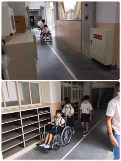 校内を車イスに乗り、移動してみました。