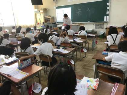 みんなで声をそろえて、漢字混じりの文を読みました。