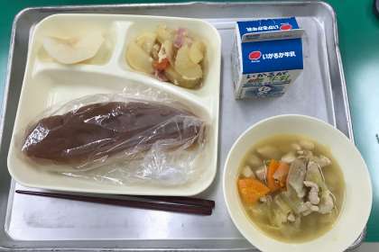 今日の給食には、「青なし」の二十世紀なしが出ます。