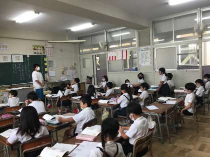 絵を見て、お話を考えます。たくさん考えることができたね。
