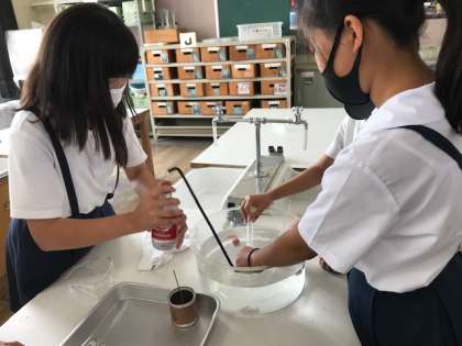 炭酸水の中にとけているものが二酸化炭素か調べる実験をしました。