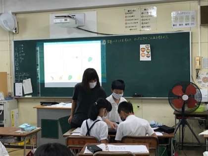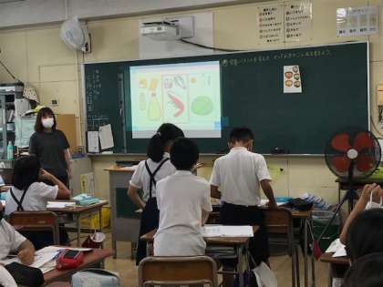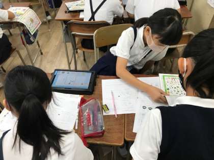 グループで、栄養バランスを考えたとっておきのこんだてを考えました。タブレットを使い、みんなの前で発表することができました。