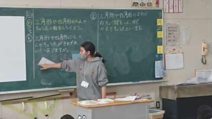 今日は、三角形と四角形の頂点と辺の数について、調べました。