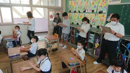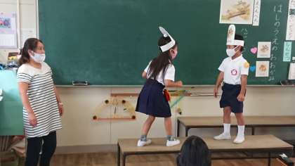 1年生の道徳では、「はしのうえのおおかみ」を読んで、親切について、考えました。