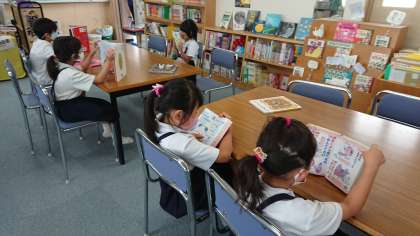 子どもたちは静かに本を読んでいます。