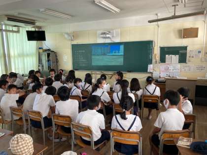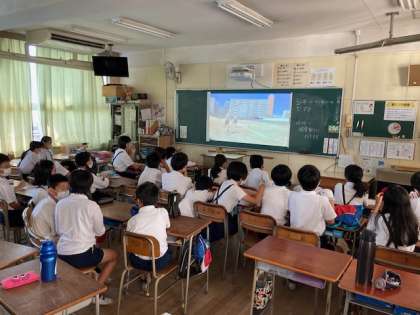 6年生は最後の運動会なので、他学年の競技をライブで観戦しています。