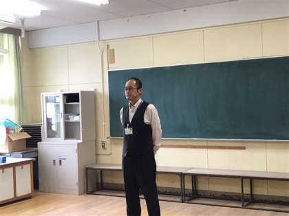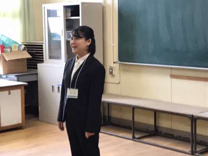 実習生の方が今日で最後ということで、児童の前と職員の前であいさつをしました。