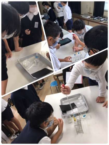 うすい塩酸を使い、実験をしました。金属をとかして、見えなくなった金属は、果たしてどうなったか調べます。