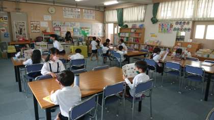 どうぶつの本やなぞなぞなど、いろいろな本を読んでいます。