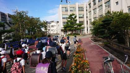 今週はPTAの方々に児童の登校を見守っていただきました。