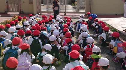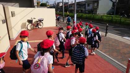 1年生が校外学習で鶴見緑地へ向けて出発しました。