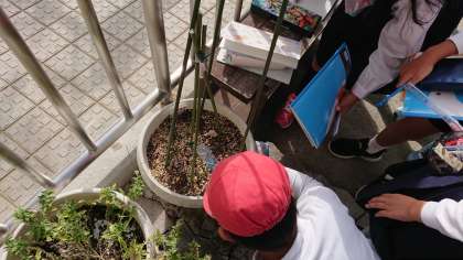 今日は、学校にあるいろいろな円を探して、その直径を測りました。