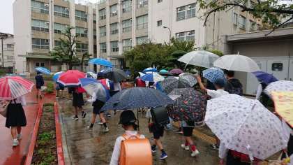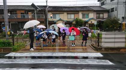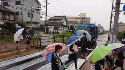 雨の中の登校となりましたが、子どもたちは安全に登校できました!!