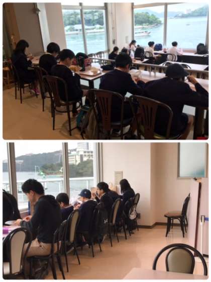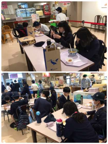 ぞくぞくと新しい学校が来てます。混むかもしれないので、早めに食べています。