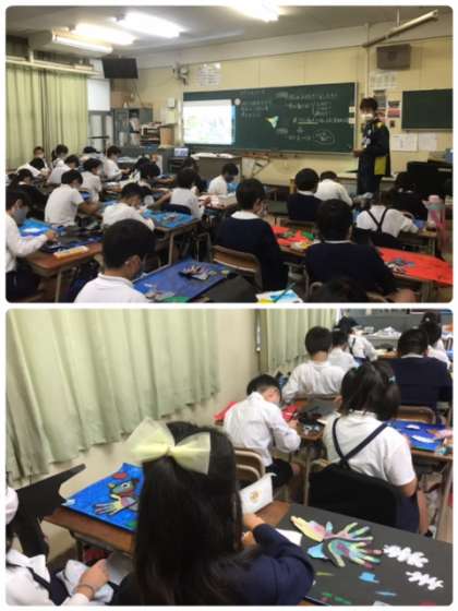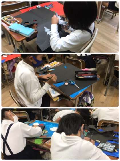 パーツを並べて、作品の構成を考えます。もくもくと集中して、作業することができました。