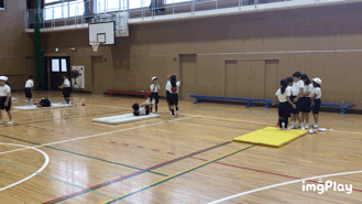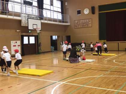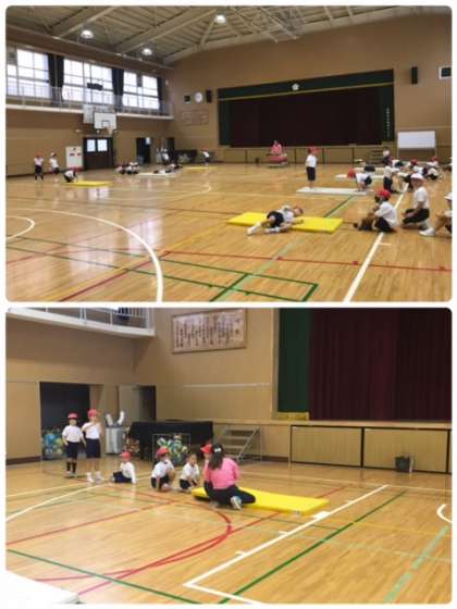 少し苦戦してる子どもたち用に、マットの下に跳び箱の踏み台をはさんだ特別ステージが用意してありました。