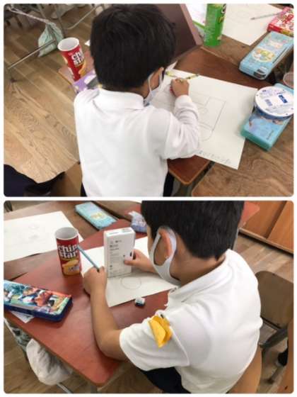 いろいろ形をうつして、組み合わせ、絵をかきます。