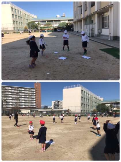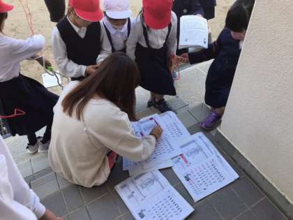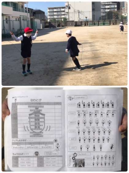 休み時間になると、なわとびとがんばりカードを運動場へ駆け出します。