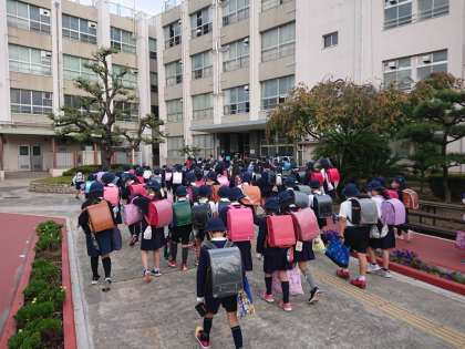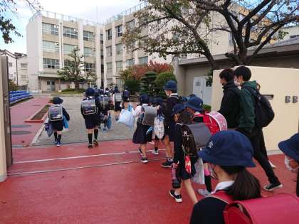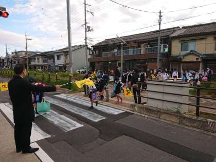 今週はPTAの方々に子どもたちの登校の安全を見守っていただきます。