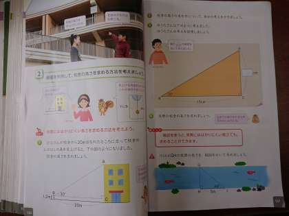 この考え方を使えば、ビルの高さや川幅を求めることができます。